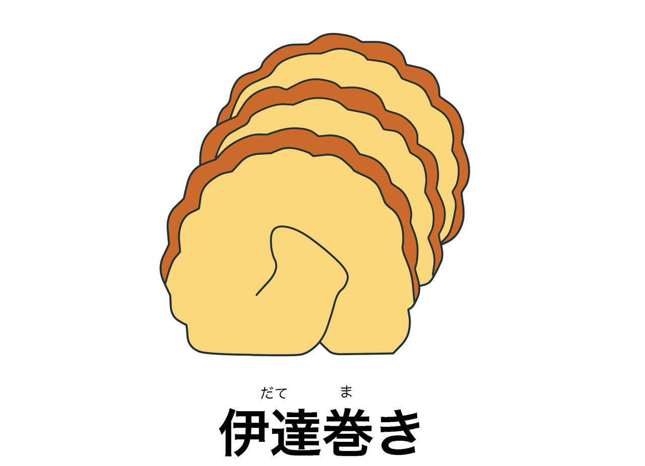 伊達巻きは形が巻物(まきもの)に似(に)ていることから、頭(あたま)がよくなりますようにという気持ちが込められていると言われています😮