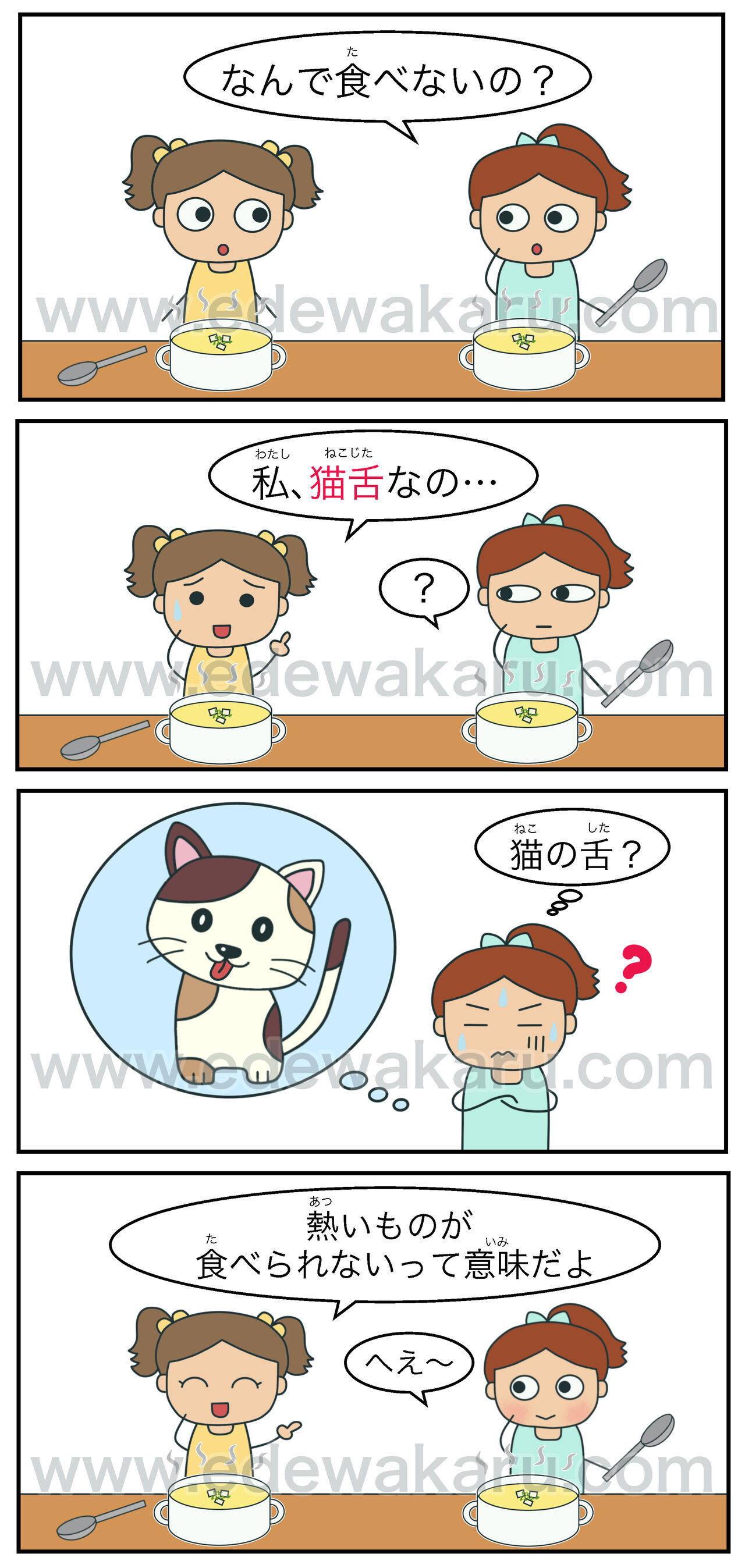 B:私(わたし)、猫舌(ねこじた)なの
