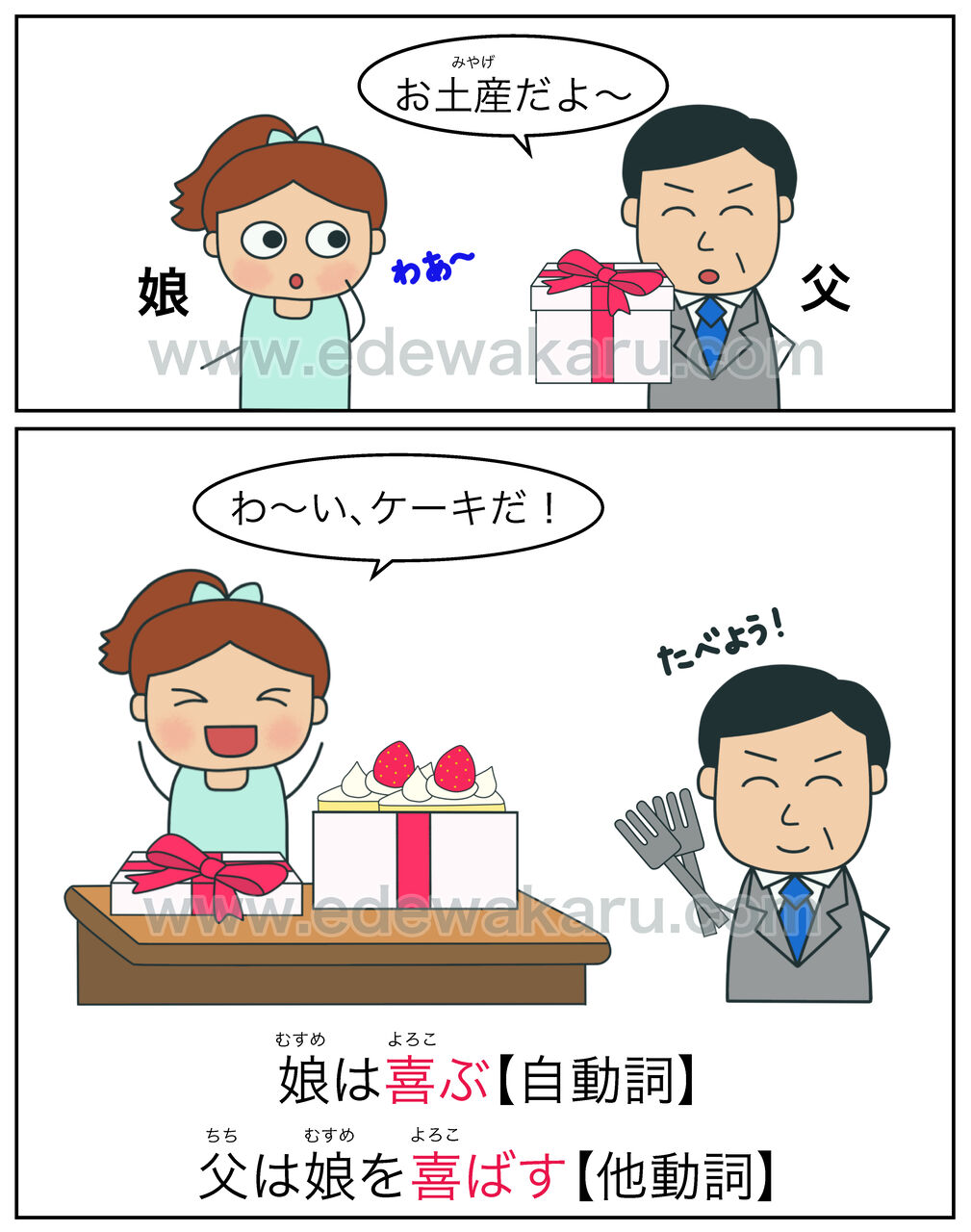 【絵でわかる自動詞・他動詞イラストリスト】